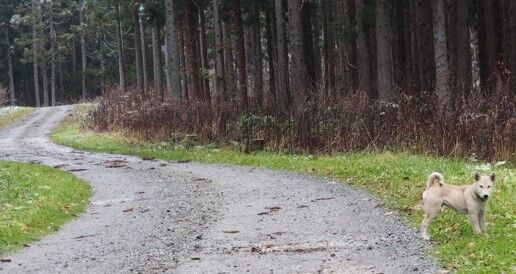 アイヌ犬の運動コースの林道へ初めて連れて行き様子を見てみました、最初に先住犬を放し獣の気配を確認してから最後に運動させてみました、ここは羆、エゾ鹿、キタキツネ、蝦夷狸、オコジョなどたくさんの野生動物がいる為、深追いして帰らなくなることが多々あるからです。カイの大きさだと穴に落ちたり、川のがげや、首輪の絡まりなどで命を落とす可能性があるので慎重に時間をかけて慣らしてゆく予定です。