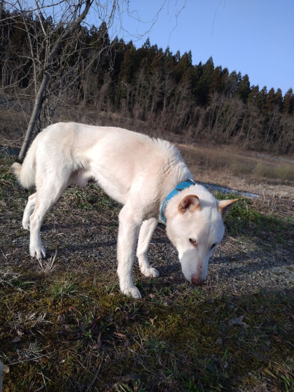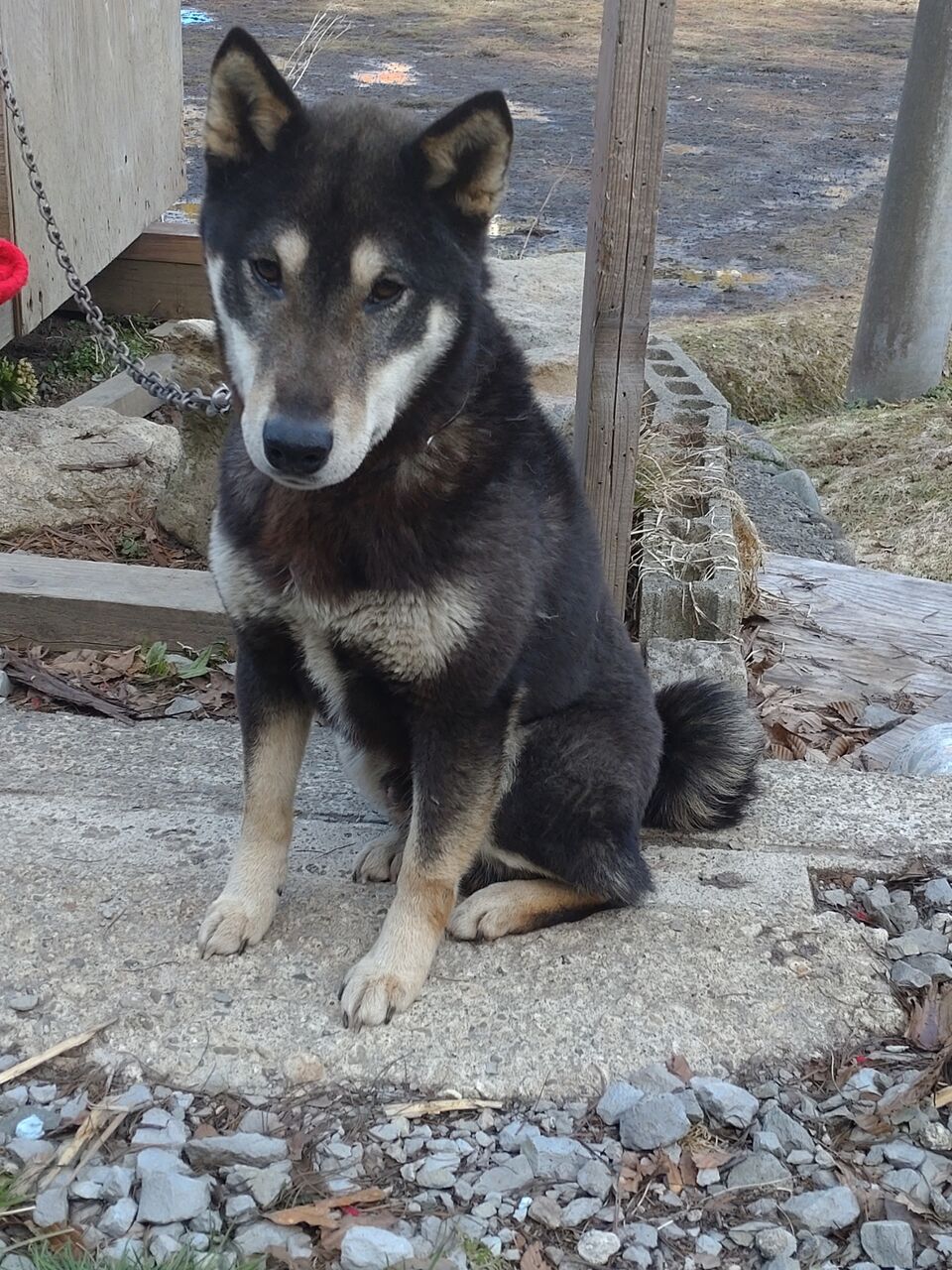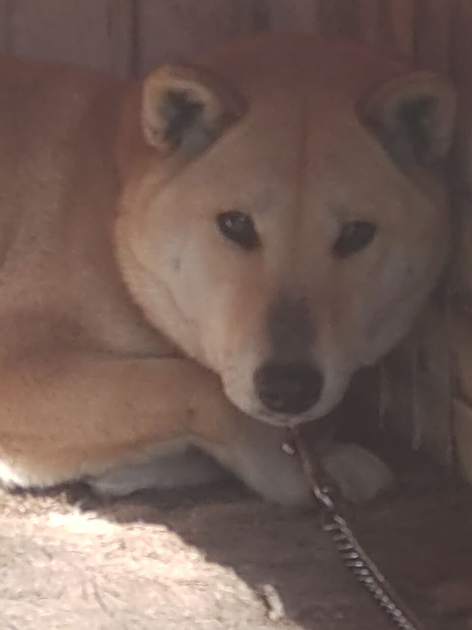 小春日和のこの日は、犬小屋の横で日向ぼっこしていた熊女ちゃんでしたが、カメラを向けたとたん犬小屋に入ってしまって、一歩も出できてくれませんでした😅