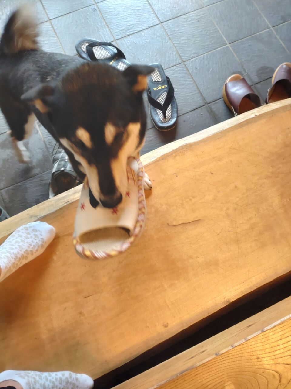 2024年07月26日 お母さんのスリッパ大好き〜 櫻のもみじ R2年9月20日生 村岡犬舎波賀ノ紅継×乙女白雪姫参考招待犬のもみじちゃんです!先日お邪魔した時のひとコマですが、耳を下げて尻尾フリフリ、興奮しながらも、飼い主さんのお母さんのスリッパを、ずーと咥えながら大歓迎してくれました🤣時折見せるキリッとした表情は、曾祖母犬「五月の黒姫」を思わせるような顔貌には、もみじちゃんの質の良さを、改めて感じて来ました🤗コメントもお待ちしております。仔犬の飼育にご興味のある方は、ご連絡ください🙇http://www.akita-shibainu.net